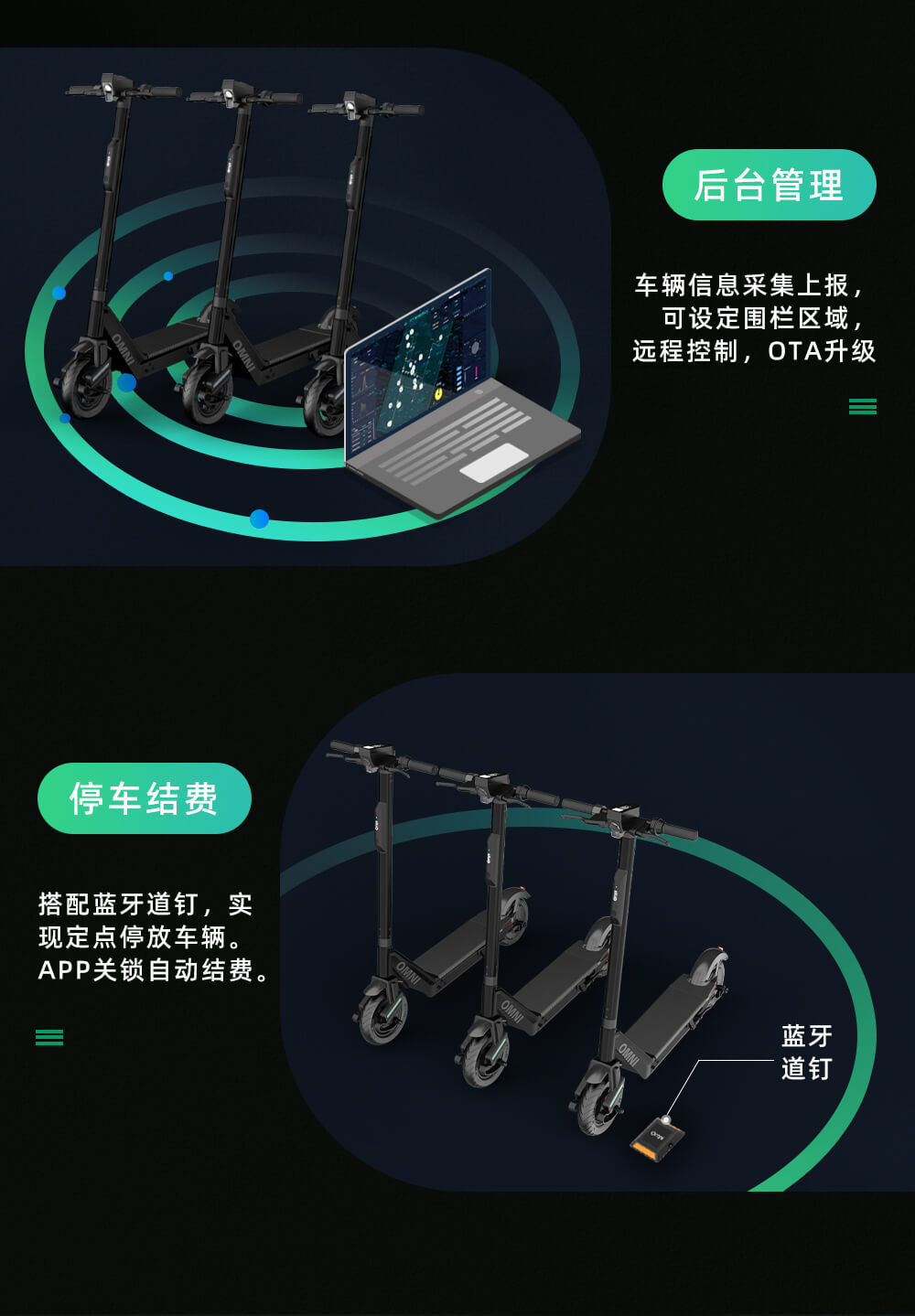 歐米智能共享滑板車半嵌入式IOT 雙頻GPS+慣導(dǎo)技術(shù) L1/L5 GNSS雙頻全球衛(wèi)星定位技術(shù),有效提高接收機(jī)位的定位精準(zhǔn)度,抑制路徑效應(yīng)的影響,并能很好的提高抗干擾能力,4G通訊技術(shù),開鎖,上傳數(shù)據(jù)更快更精準(zhǔn),結(jié)費(fèi)時(shí)自動(dòng)鎖車,環(huán)保塑膠材料,外表磨砂質(zhì)感,更耐磨,耐沖擊,耐腐蝕,耐高溫,延長產(chǎn)品使用壽命,歐米智能共享滑板車解決方案在全球的校園,城市以及景區(qū)都擁有大量成功的案例