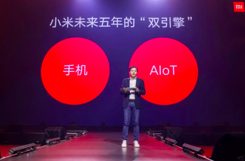 而后,隨著 5G 時代到來,小米 AIoT 戰略高度更上一層,公司在組織和戰略上全面向物聯網傾斜——雷軍在 2019 年年初確定了“手機+AIoT”的雙引擎戰略,提出 5 年 100 億 “All in AIoT”。